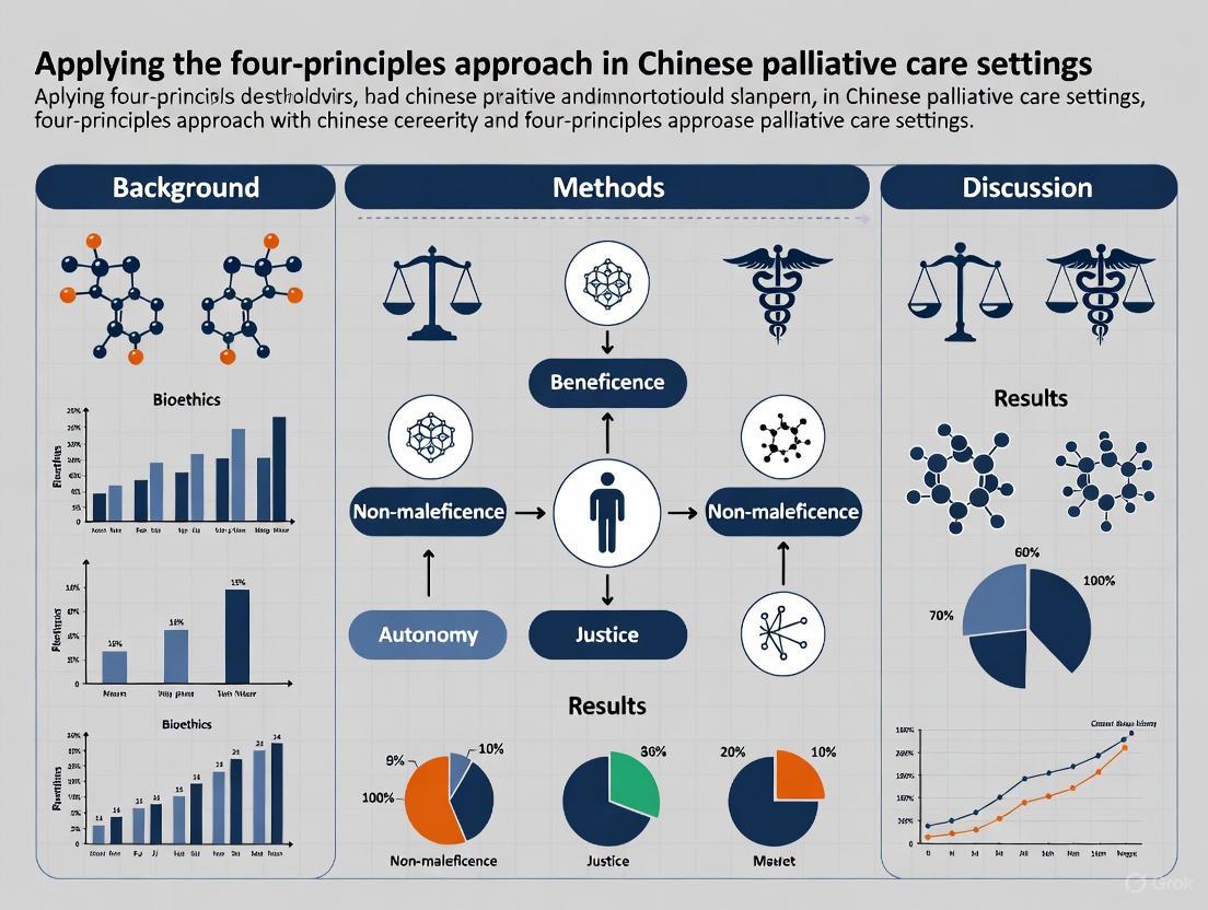 The four-principles approach (respect for autonomy, nonmaleficence, beneficence, and justice) to biomedical ethics has become the dominant framework in Chinese medical education and training programs [1]. This Western-originated ethical framework is extensively incorporated into university curricula, occupational training for registered professionals, and evaluative criteria for clinical practice and research [2] [3]. In palliative care specifically, the principlist framework appears to be the sole ethical framework taught in detail to practitioners [1]. This application note examines the implementation of this framework within Chinese palliative care research contexts, with particular attention to cultural translation challenges and methodological considerations.