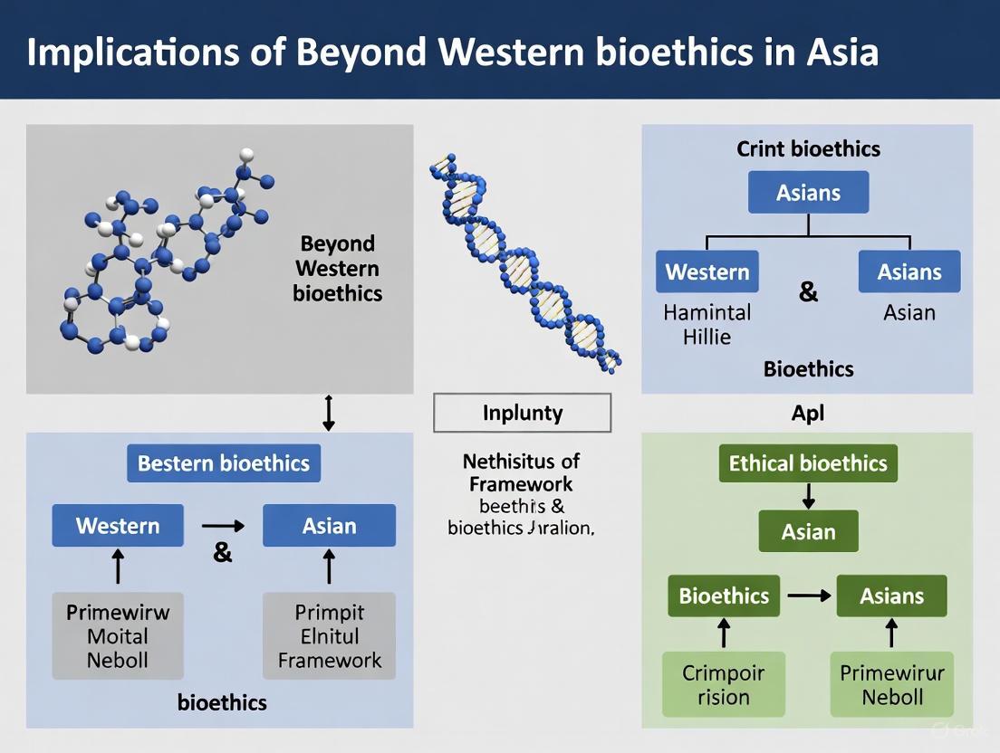 The exploration of these regional variations is not merely an academic exercise but has profound implications for healthcare delivery, clinical research, drug development, and the governance of emerging biotechnologies. For researchers, scientists, and drug development professionals operating in or with Asian countries, understanding these nuances is essential for conducting ethically sound and culturally appropriate work. This guide provides a detailed analysis of the bioethical practices in China, Japan, Singapore, and India, highlighting their distinctive features, regulatory frameworks, and practical implications for the scientific community, all within the context of the broader thesis of moving beyond Western bioethics and its implications for understanding autonomy.